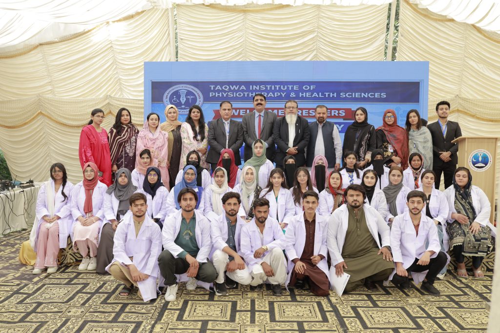 Taqwa Institute of Physiotherapy and Health Sciences proudly inaugurated the Orientation Day, White Coat Ceremony, and Welcome Party for DPT Batch VI, marking the start of a new academic journey filled with dedication and professional commitment.
